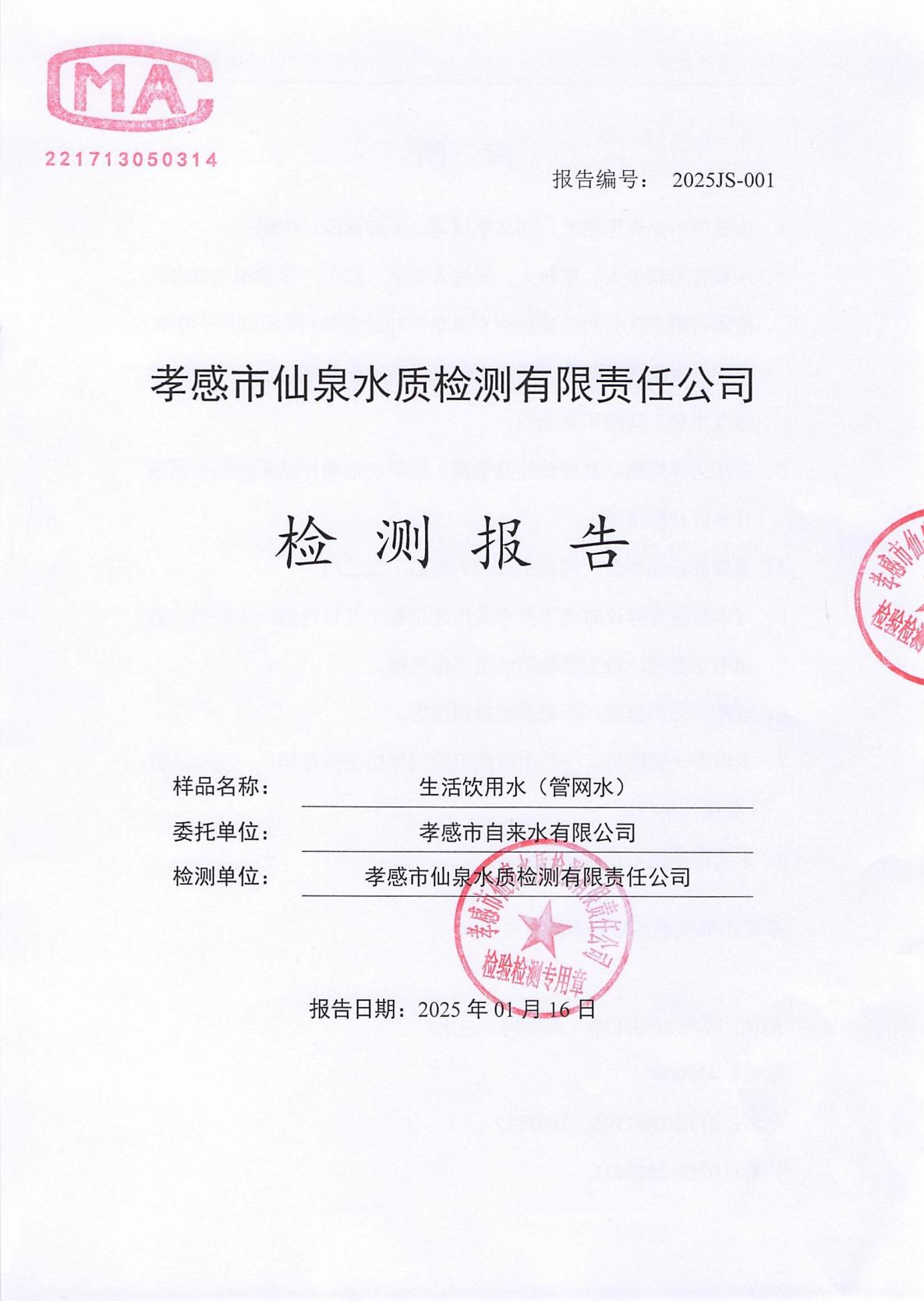 來源:孝感自來水 發布時間:2025/1/16 11:32:00