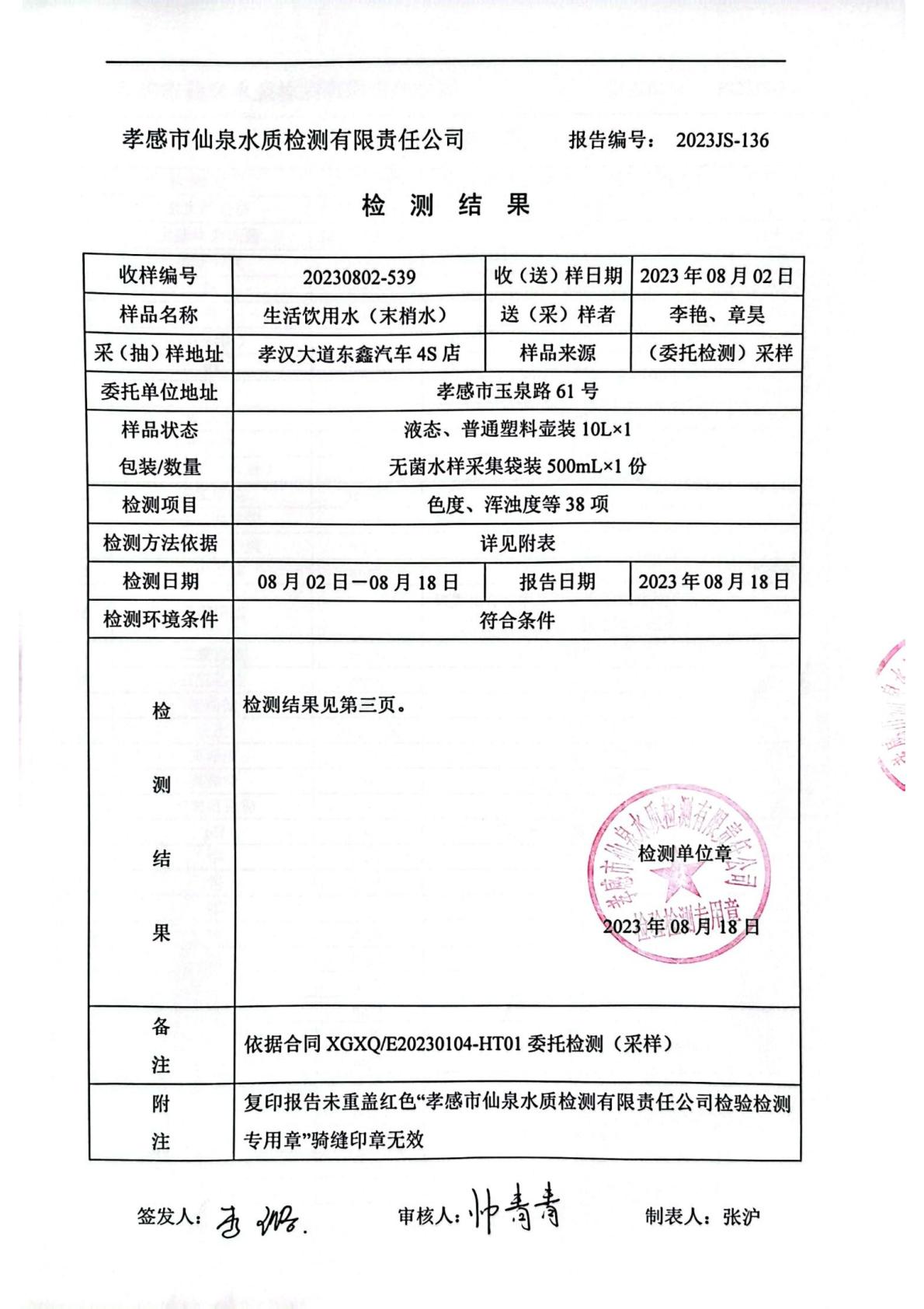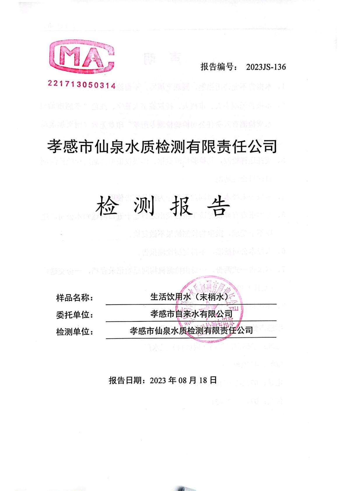 2023年8月檢測報告