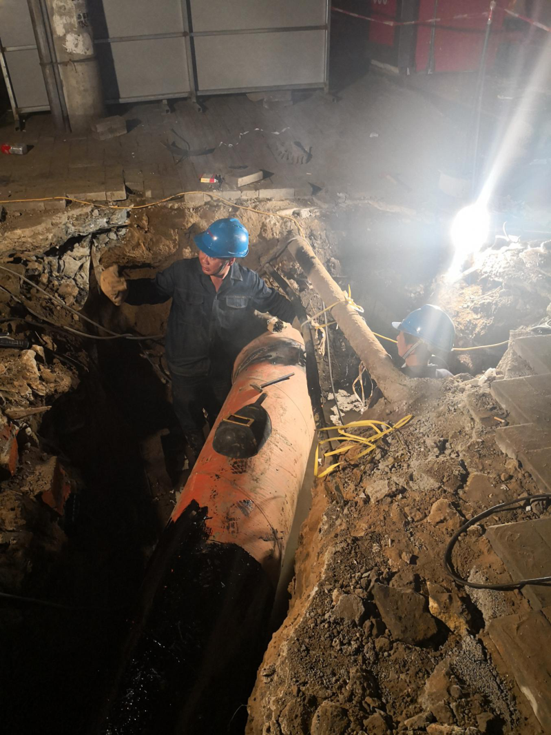 5月11日晚上10點,書院街供水管道遷移對接工程前期準備工作全部就緒。根據(jù)施工方案,書院街施工前后的閥門開始關(guān)閉,進入施工階段。23時,開始切割接通點管道并進行抽排水、拆除舊管。12日凌晨2時,進入管道安裝。6時,遷改工程的管道安裝進行砌墩,開閥門進行管道沖洗及壓力檢測。8時,管道遷改施工工作順利完成,經(jīng)過十個小時的徹夜工作,累計移改DN500球墨鑄鐵管36米。由于精心組織、科學(xué)施工,整個施工過程比原計劃時間提前3個小時。