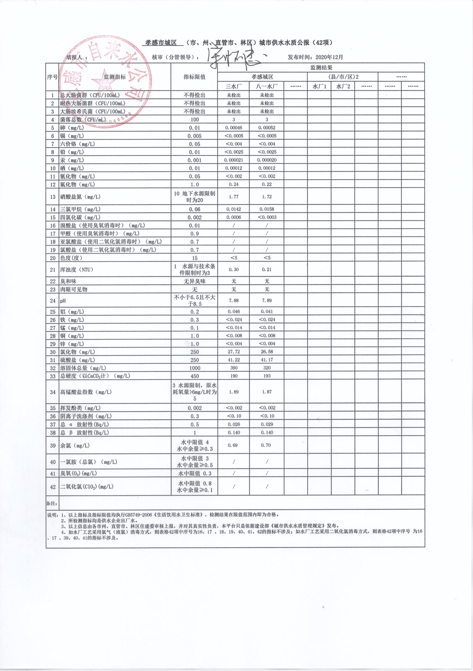 2020年12月水質(zhì)報告