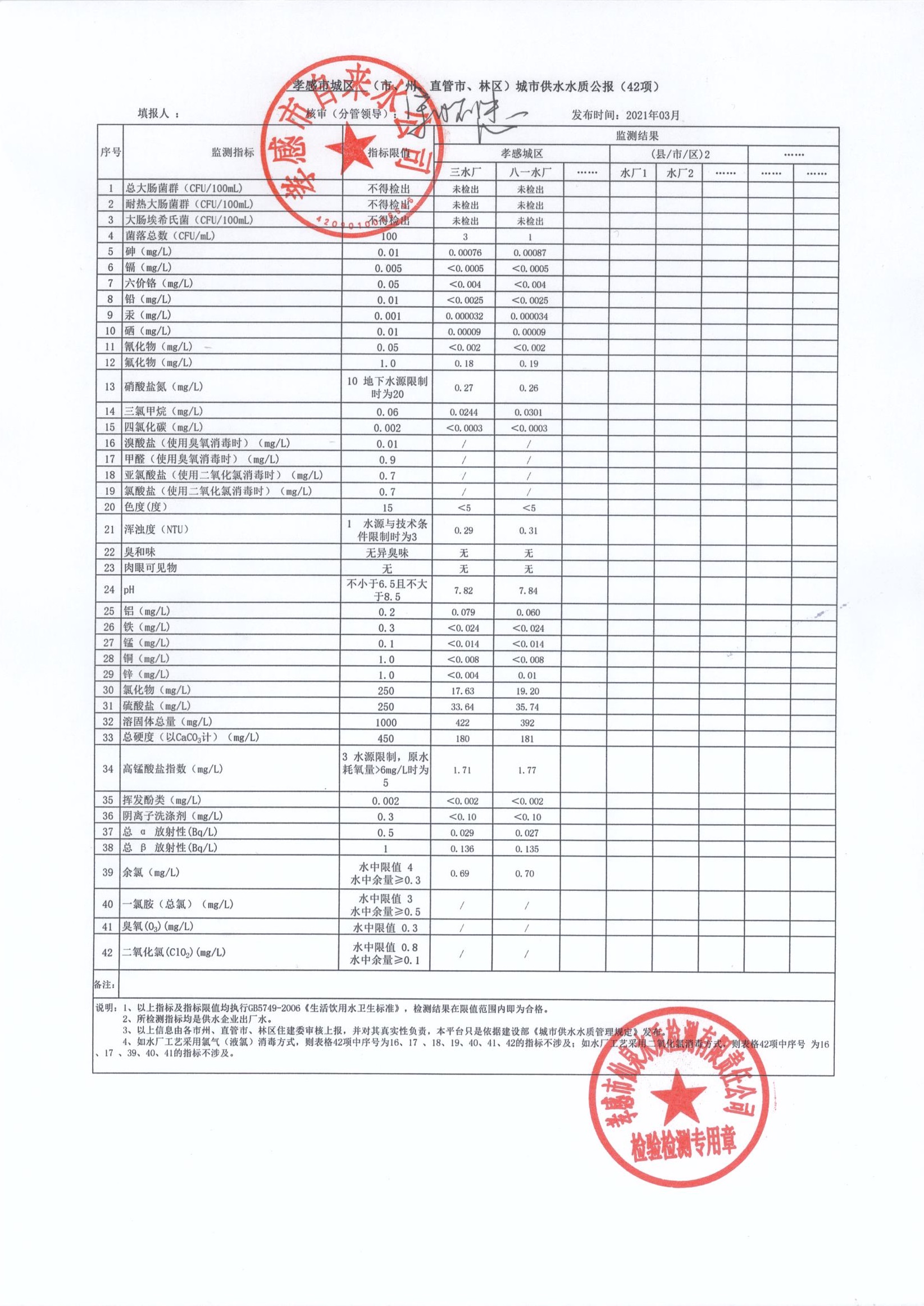 2021年3月水質報告